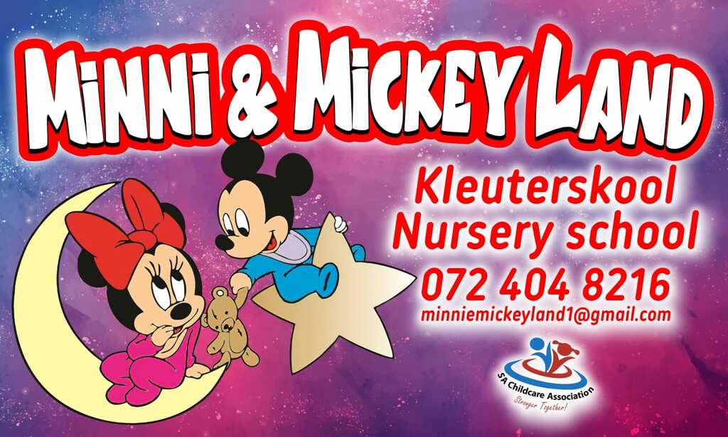 Minni and Mickey land started as a dream planted in the heart of Marlien Watkins back in 2019 and opened in October 2019 with 3 children. Pre-school children are our priority and we do our best to look after our little bundles of joy as their parents would. Loving them, nurturing them, teaching them and taking care of them.